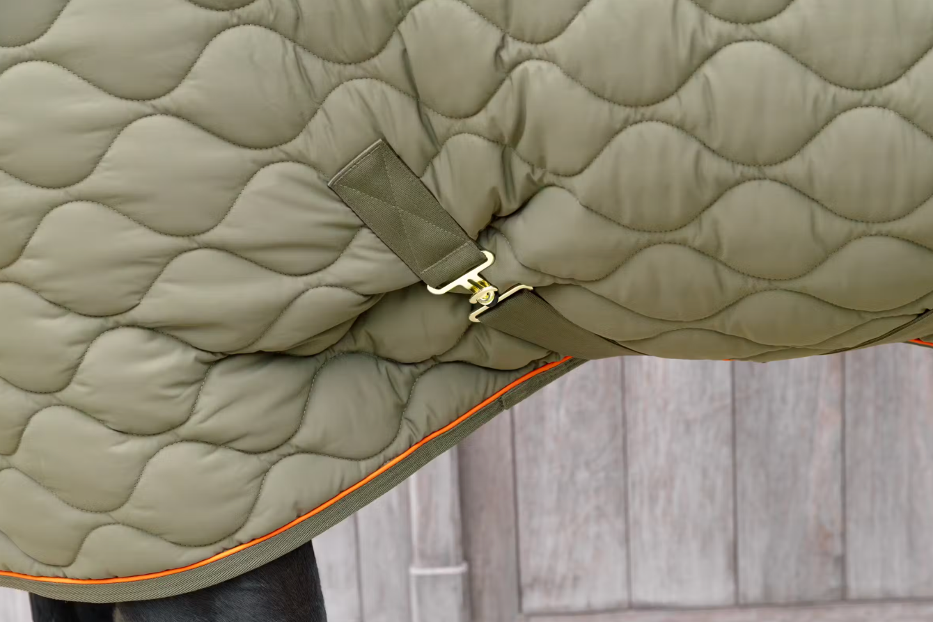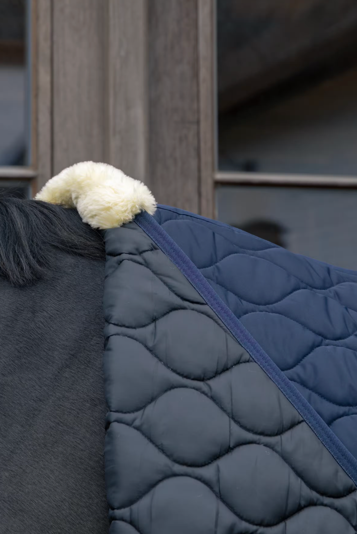 Thanks to the thoughtful shape, the rug has a better fitting on the horse. The rug closes with 2 front buckles and 2 surcingles. The whiters are protected by an artificial sheepskin.