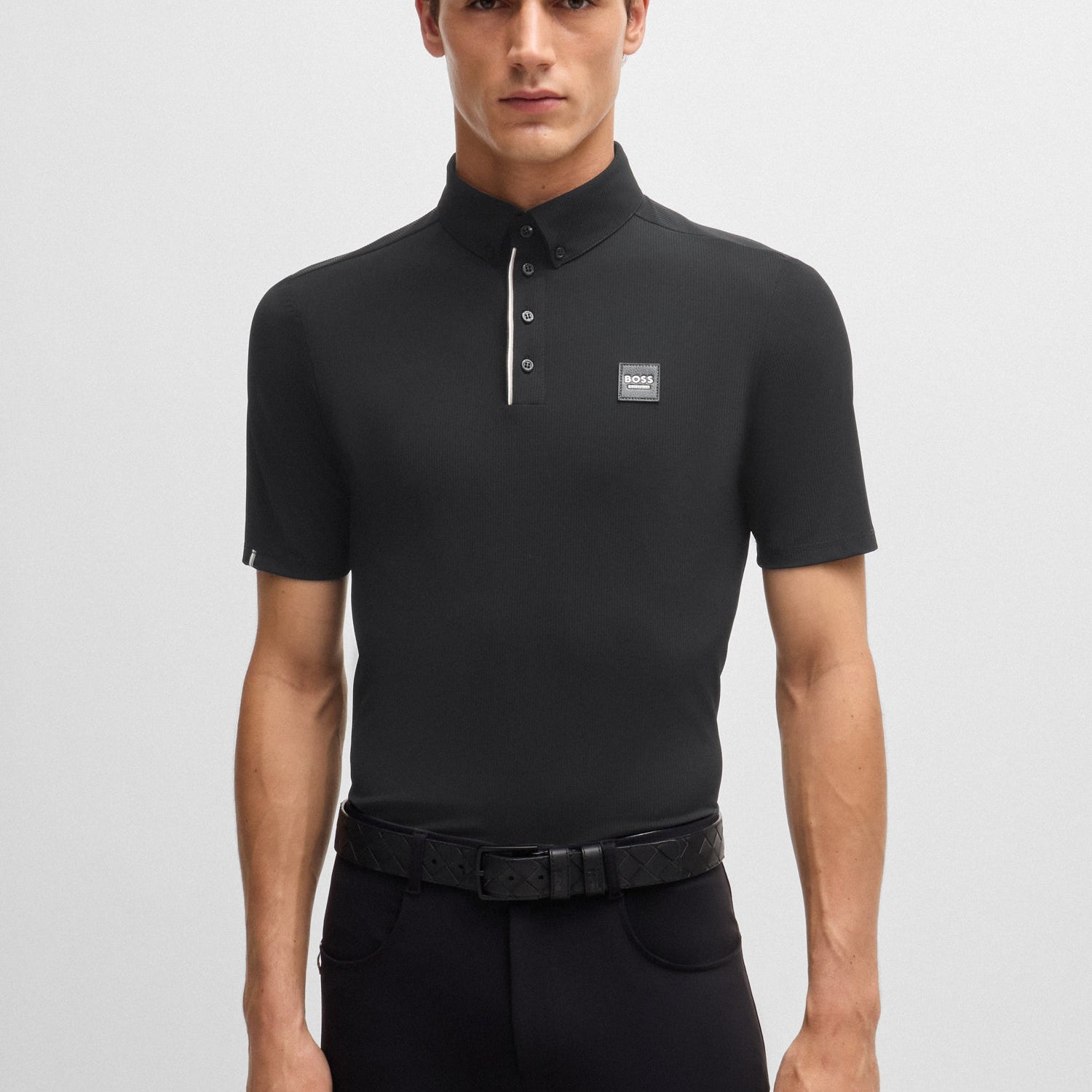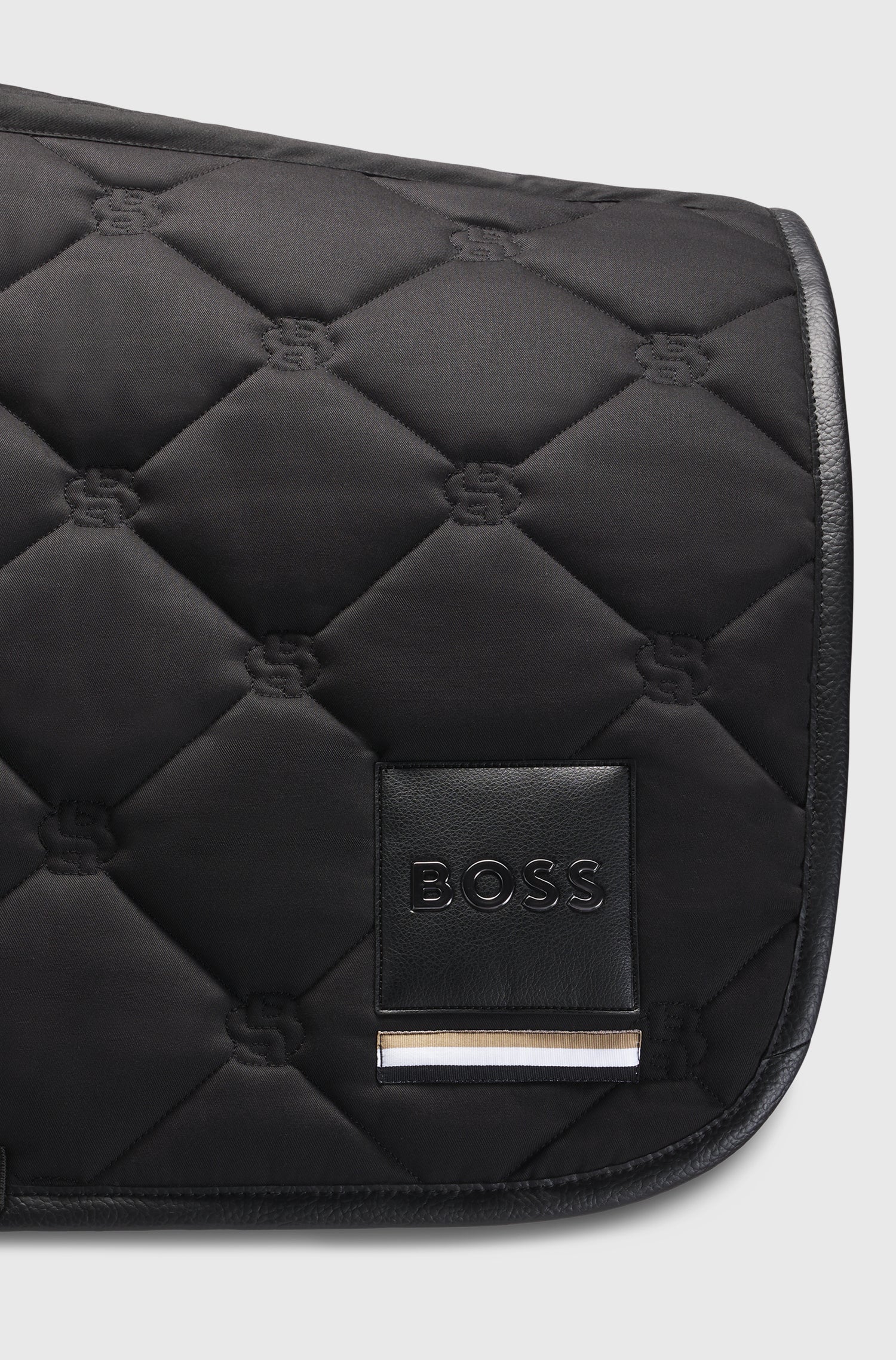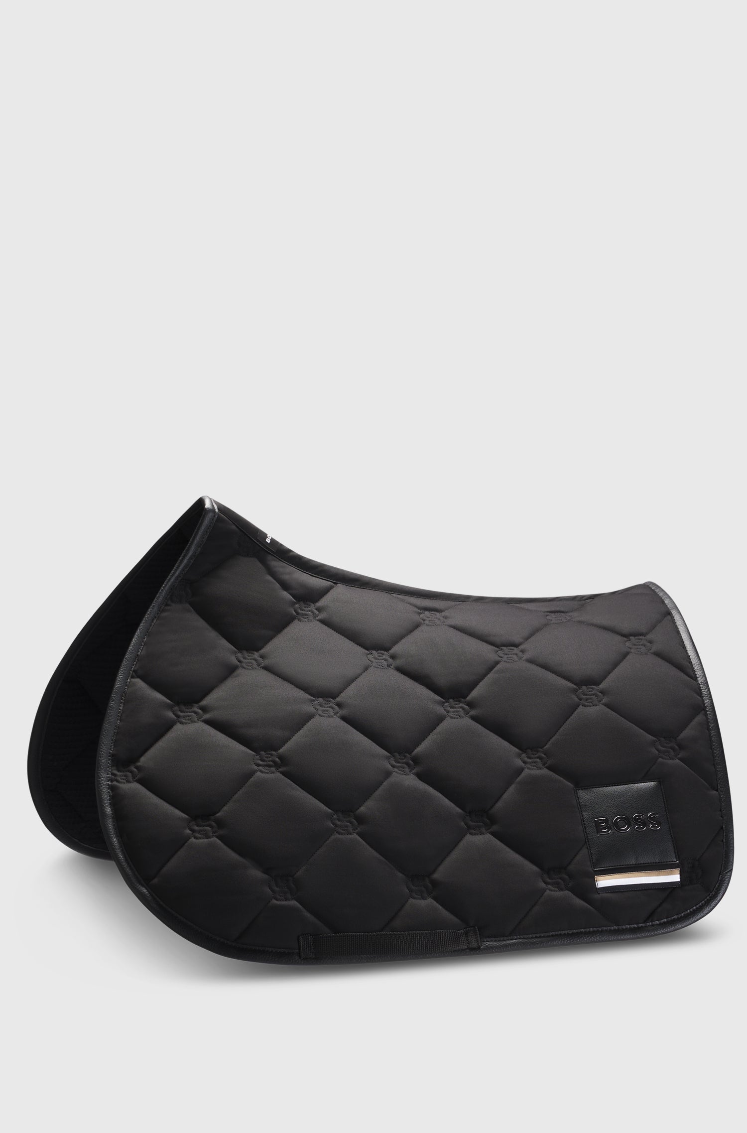 Jumping saddle pad with Double B quilting and leather patch with signature stripes below the logo and imitation leather edging band