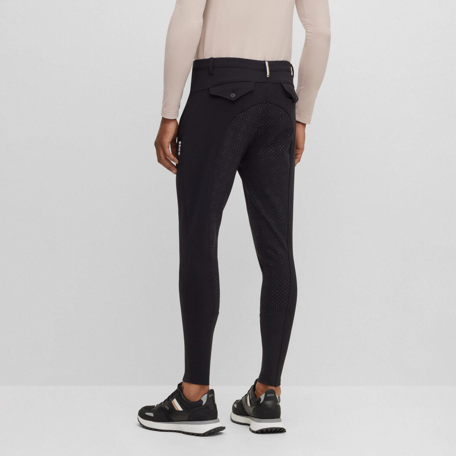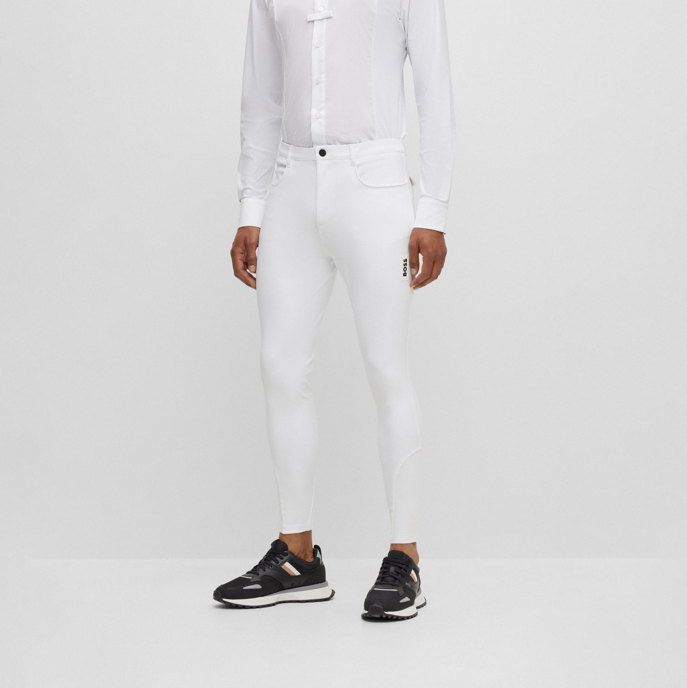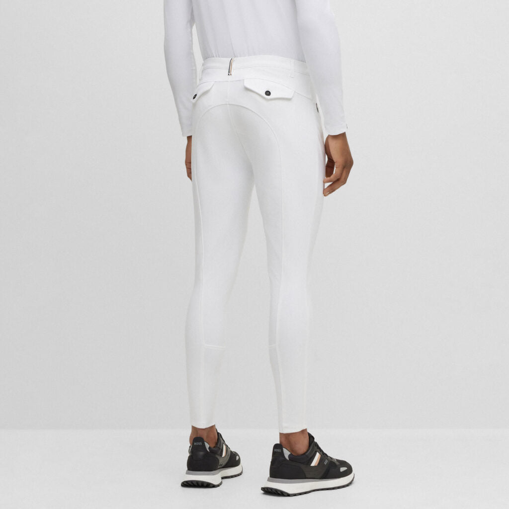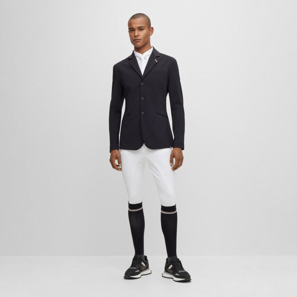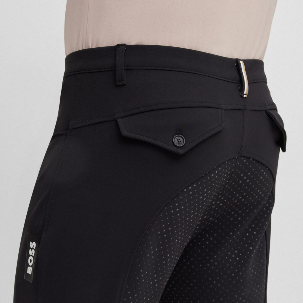 Designed for both competition and everyday rides, the BOSS Equestrian full-grip breeches combine performance and style. Made from breathable, ultra-stretch fabric with jersey inserts and a sculpted waistband, they offer comfort and a sleek fit.