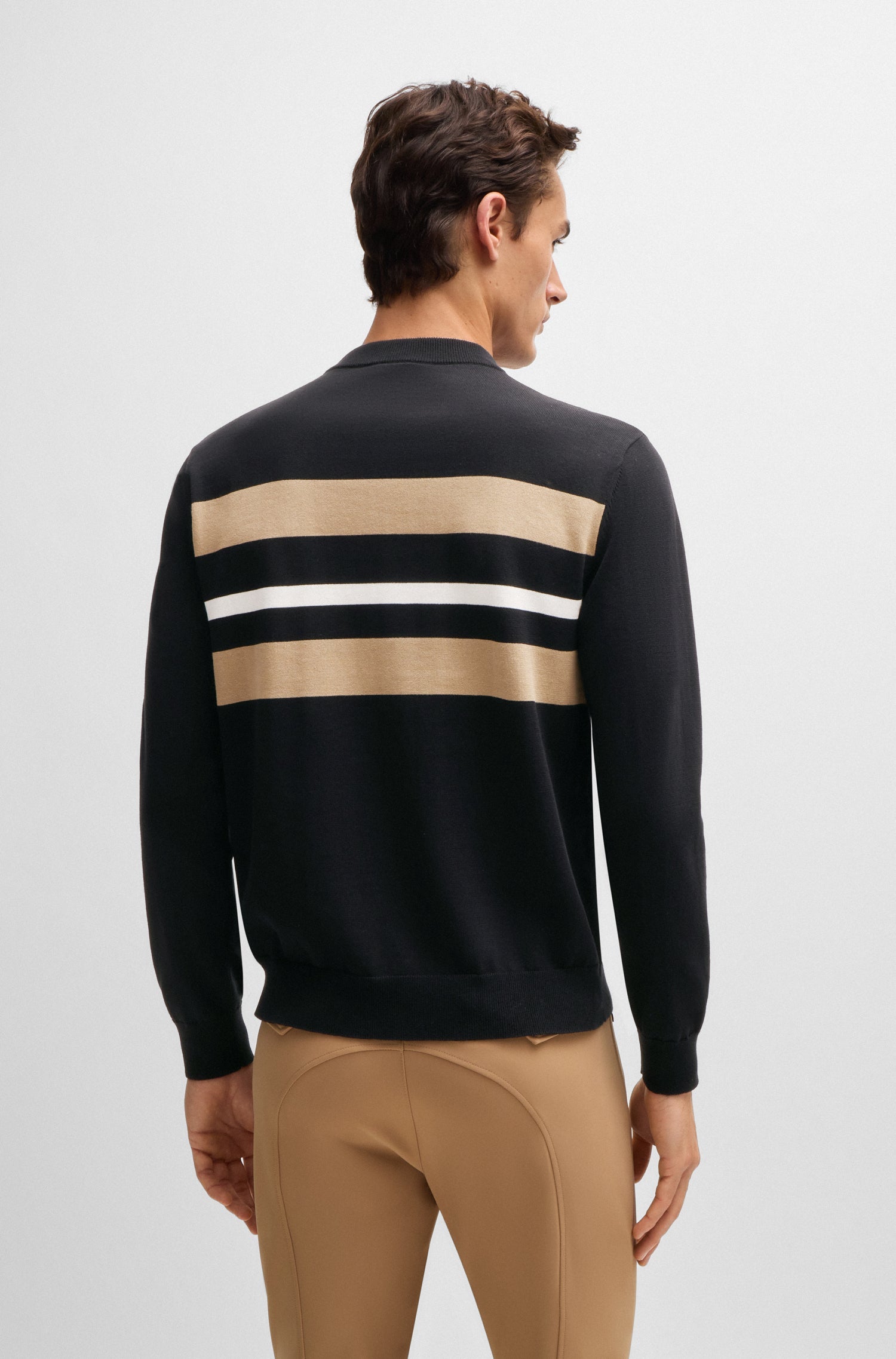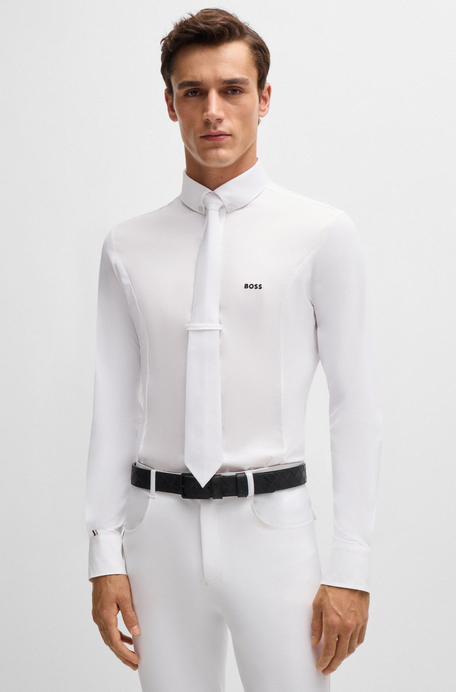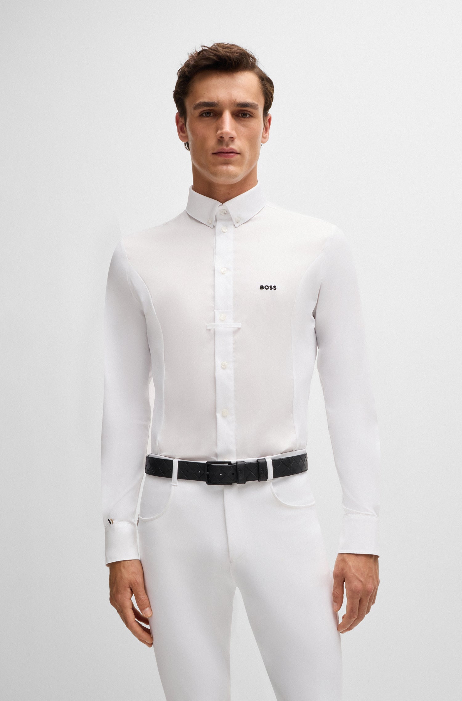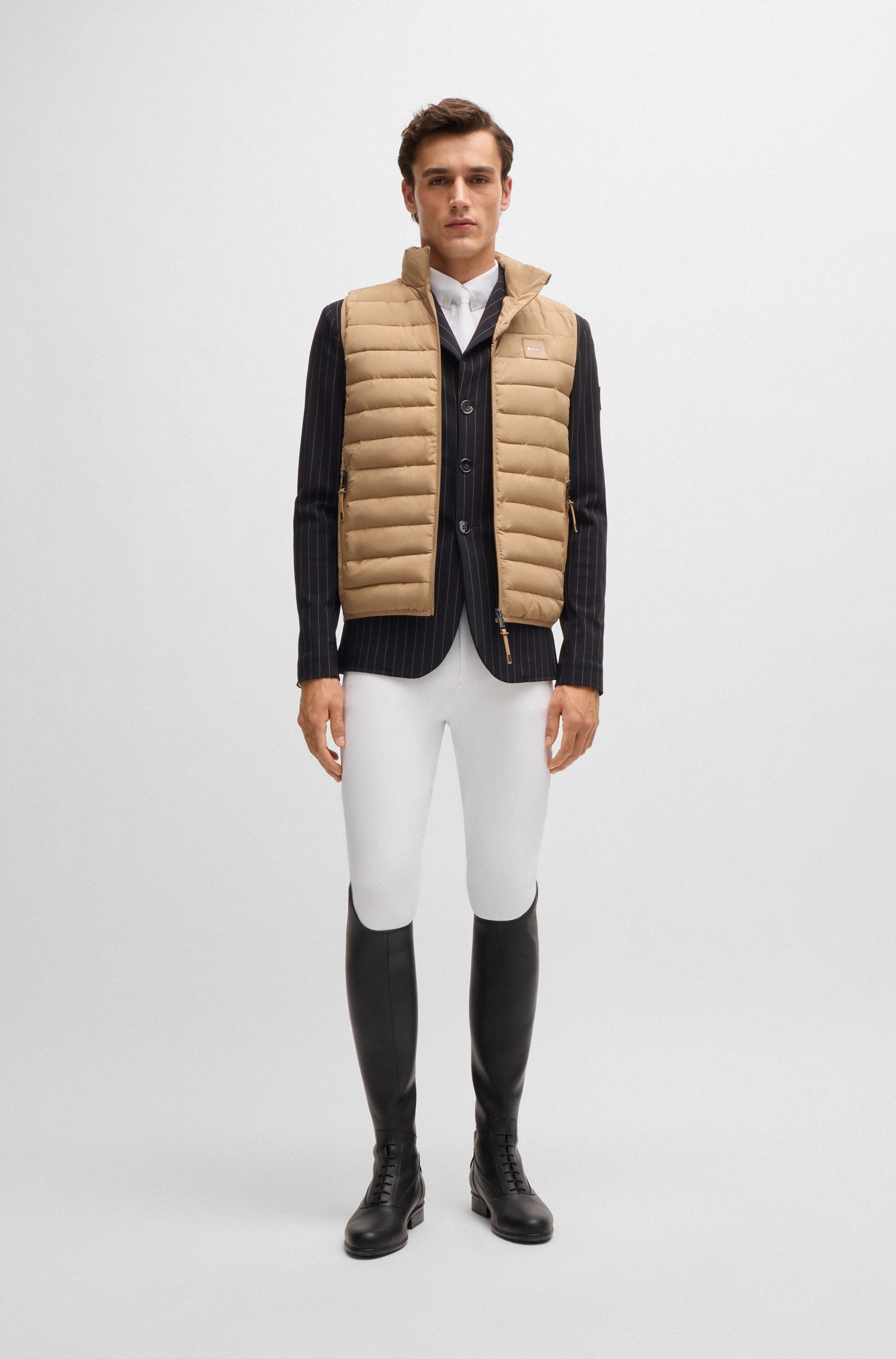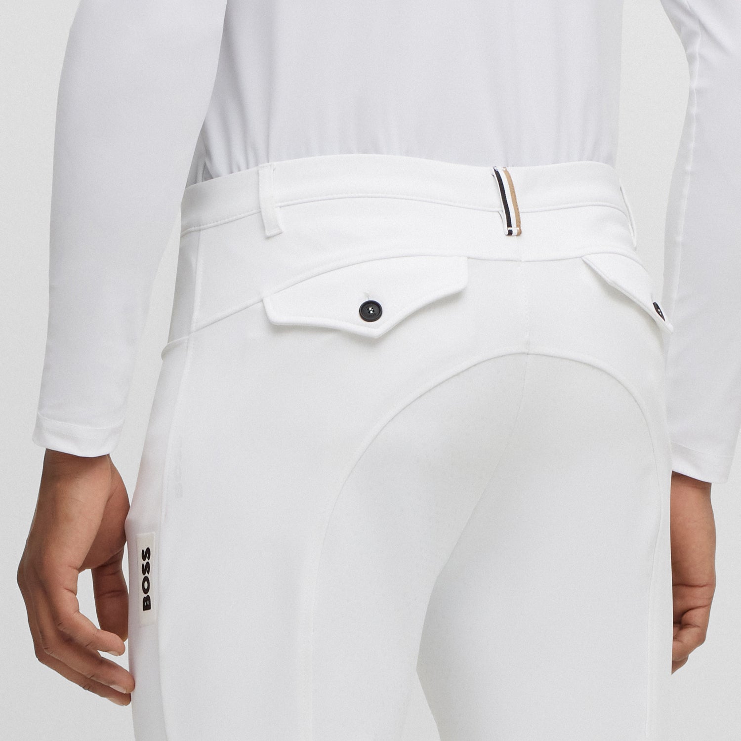 Designed for both competition and everyday rides, the BOSS Equestrian full-grip breeches combine performance and style. Made from breathable, ultra-stretch fabric with jersey inserts and a sculpted waistband, they offer comfort and a sleek fit.