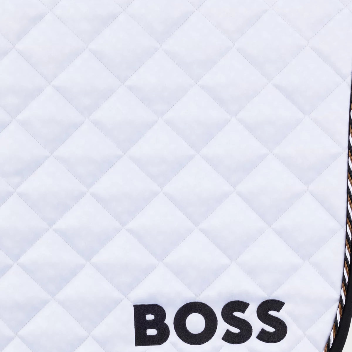 An effective fly veil by BOSS. Featuring edging in signature-stripe colours, this breathable fly veil has a crochet construction with full coverage at the ears. A BOSS logo adds the finishing touch.