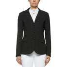 The Cavalleria Toscana women's competition jacket is a high-quality garment designed for riders seeking elegance and performance in competitions. Made from durable and comfortable technical fabric, this jacket offers an exceptional combination of style and functionality. The design features a refined black alcantara collar and black satin details on the piping and pockets, giving it a sophisticated and distinctive look.Black buttons add a touch of class, while the embossed CT logo on the left sleeve highlights attention to detail and commitment to quality. The jacket is designed to ensure a perfect fit and freedom of movement, essential for tackling the challenges of equestrian competitions with confidence and style.This technical jacket is not only elegant but also highly functional. The breathable fabric keeps the skin cool and dry, while the ergonomic construction ensures comfort throughout the day. Ideal for both competitions and training sessions.
