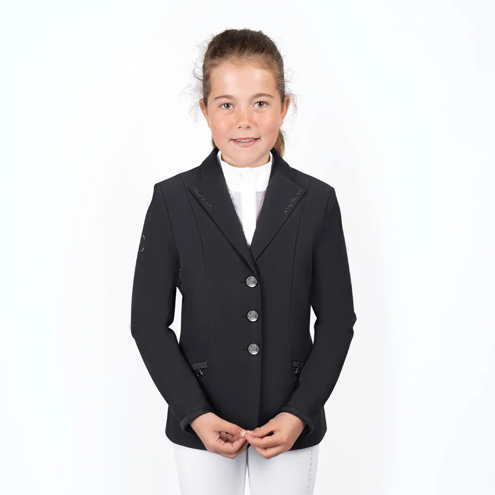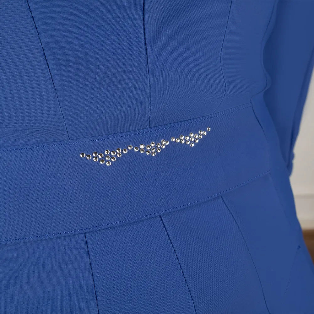 A must have addition for any serious equestrian athlete, the Ayton Show Shirt is endlessly practical and a wonderful looking competition shirt. The exceptionally buttery-soft short sleeved competition shirt sculpts perfectly for a feminine fit and is crafted from a revo-tech and antibacterial fabric that optimises moisture and sweat wicking with help from capillary action to help keep the active rider fresh and hygienic. The free stretch material that is specially crafted using a seamless design for ultimate comfort, allows for a full and comfortable range of movement. The easy-care anti-UV fabric can be machine washed at 30 degrees and dries quickly, making the shirt ideal for frequent wear.A perforated logo features on the back of the shirt, that not only gives an elegant finish, but performance is enhanced due to the additional airflow and ventilation aiding breathability.The shirt is fastened with a silver zip and hexagonal zip pull, detailed with a Coldstream blue lining. Finished with Luxury Coldstream branding including silicone logo to the sleeve and emblem to the collar.