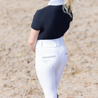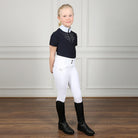 Expertly developed to look like a breech, the Ledmore Next Generation Diamante Riding Tights are the ultimate choice combining style and comfort for the ambitious young rider. Crafted using a breathable, lightweight fabric which offer 50+UV block protection from the sun’s harmful rays, in addition to water resistant technology.Utilising luxury diamantes embezzled across the front and back pockets, and the iconic logo on the leg, along with elegant, pleating for a glamorous look. An advanced silicone system on the inner leg gives the perfect degree of stability in the saddle. Completed with a perforated sock for ventilation and comfort under long boots.