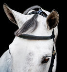 "With quick and easy adjustments, the Micklem® Multi Bridle can be a bridle, lunge cavesson or a bit less bridle, all in one superior bridle design! This bridle eliminates any discomfort associated with pressure on the facial nerve network, poll area and ears. Its unique design pays attention to the internal mouth and tongue harmony and eradicates issues such as numbness to the lower half of your horse's face caused by pressure. Low fitting dropped nosebands can be associated with discomfort and, in some cases, breathing restriction. However, this bridle's arrangement considers the danger and trigger zones of your horse's face to present a bridle that champions comfort and an anatomical design with beautiful aesthetics. It comes with tongue protection clips, bit straps, curb groove strap and three strength levels, including a more substantial bitless strap option.