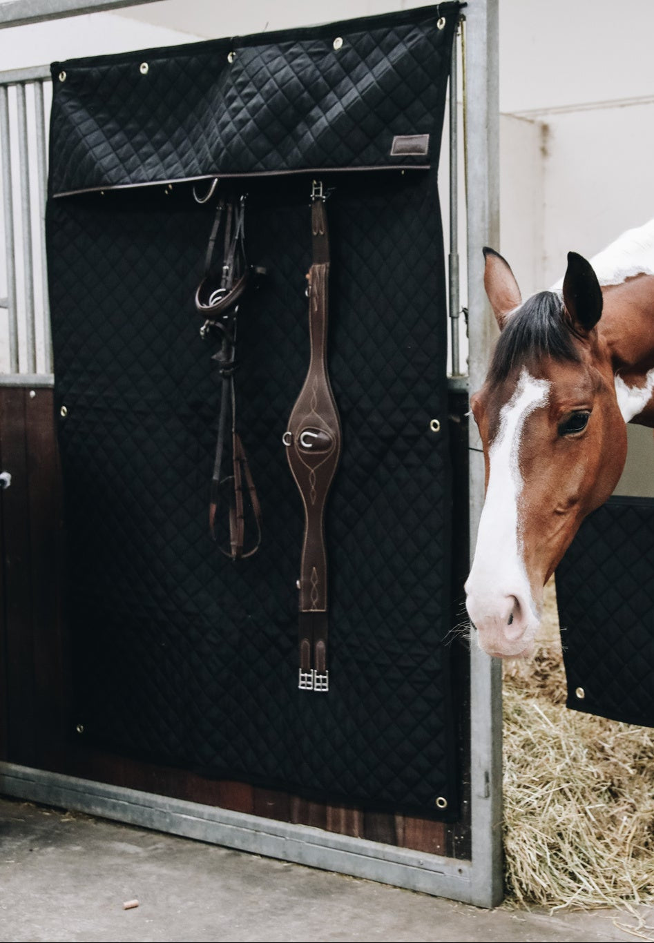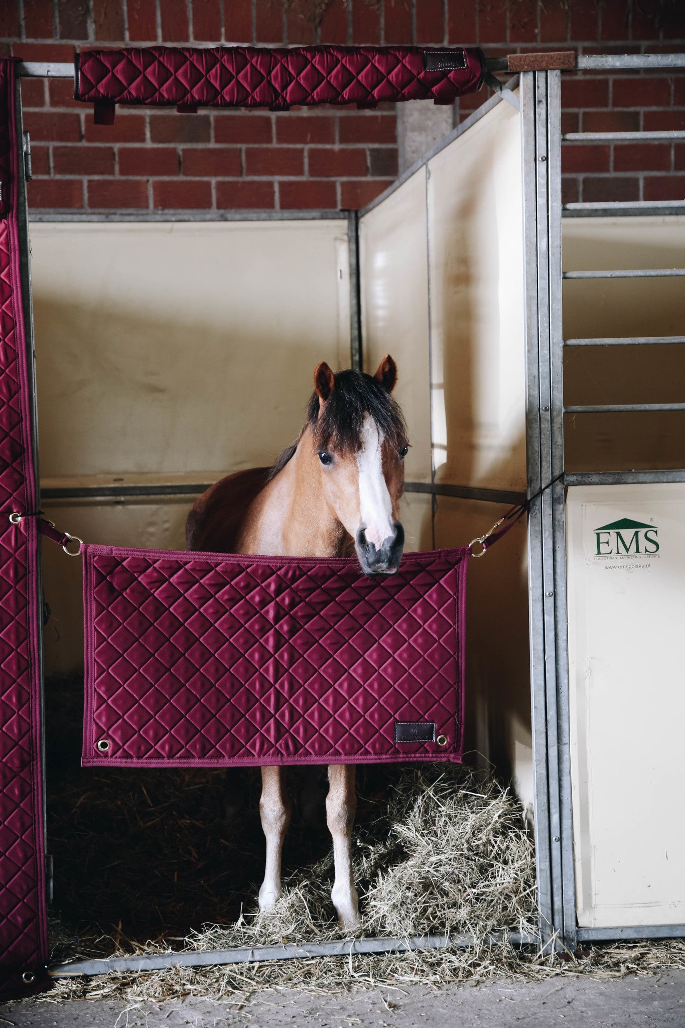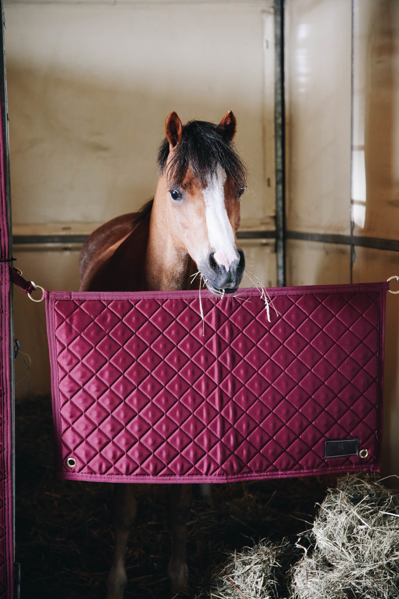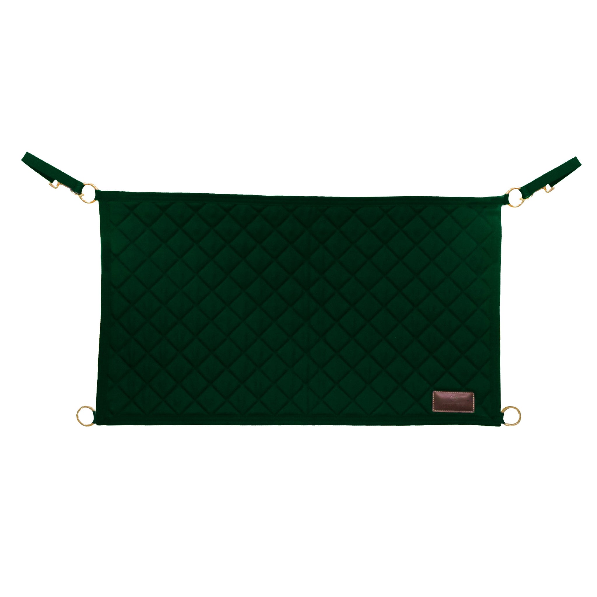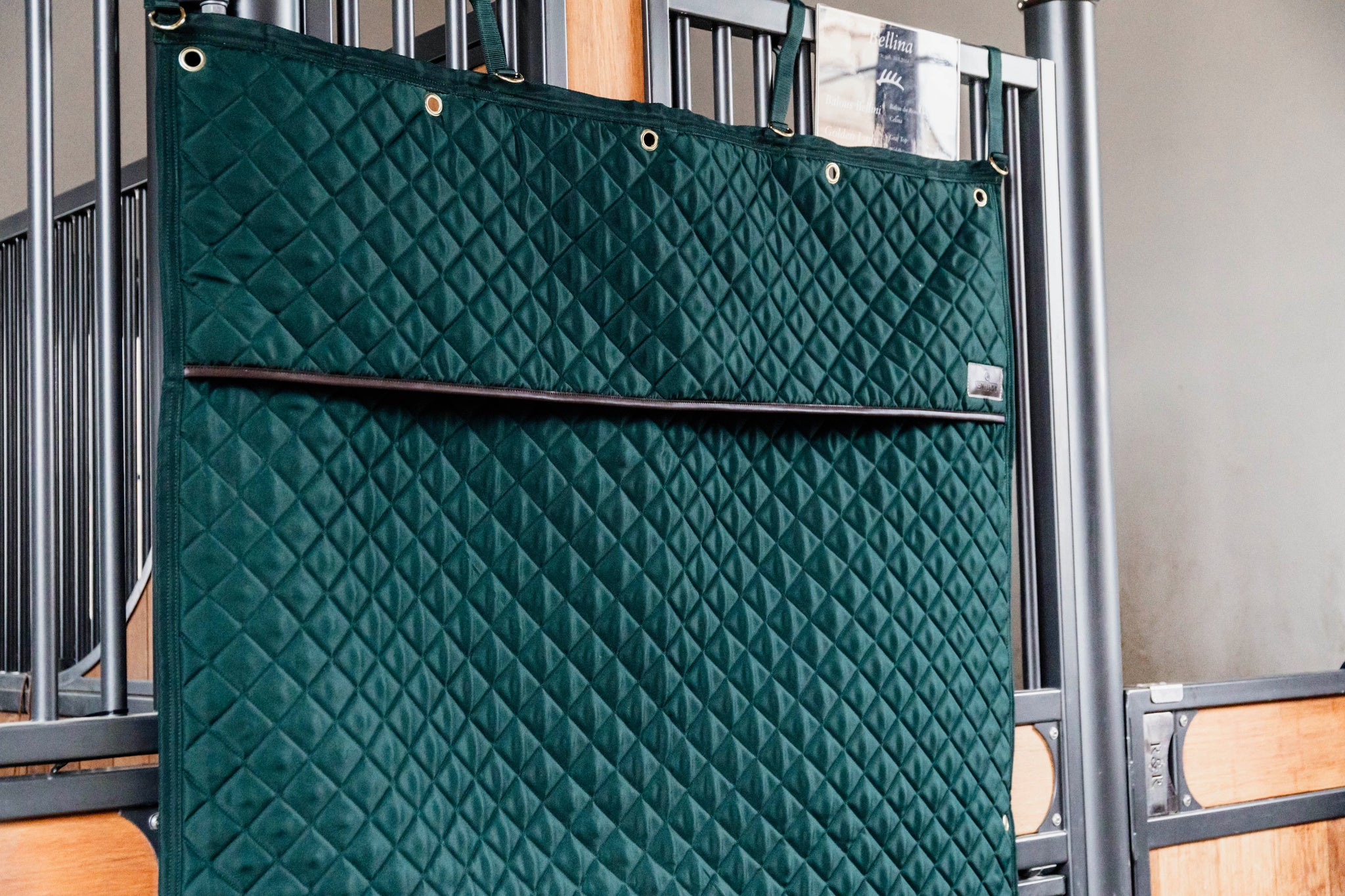 A reversible name tag on the front offers space for personalization. The bag also features a hook-and-ring system at the top, making it easy to hang anywhere. Styled with the same elegant diamond quilting as our stable collection (curtain, guard, head protector) and rugs, it completes the signature Kentucky show look.