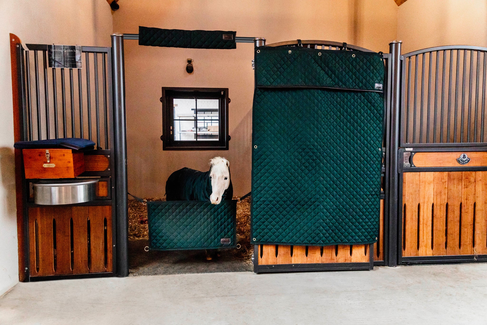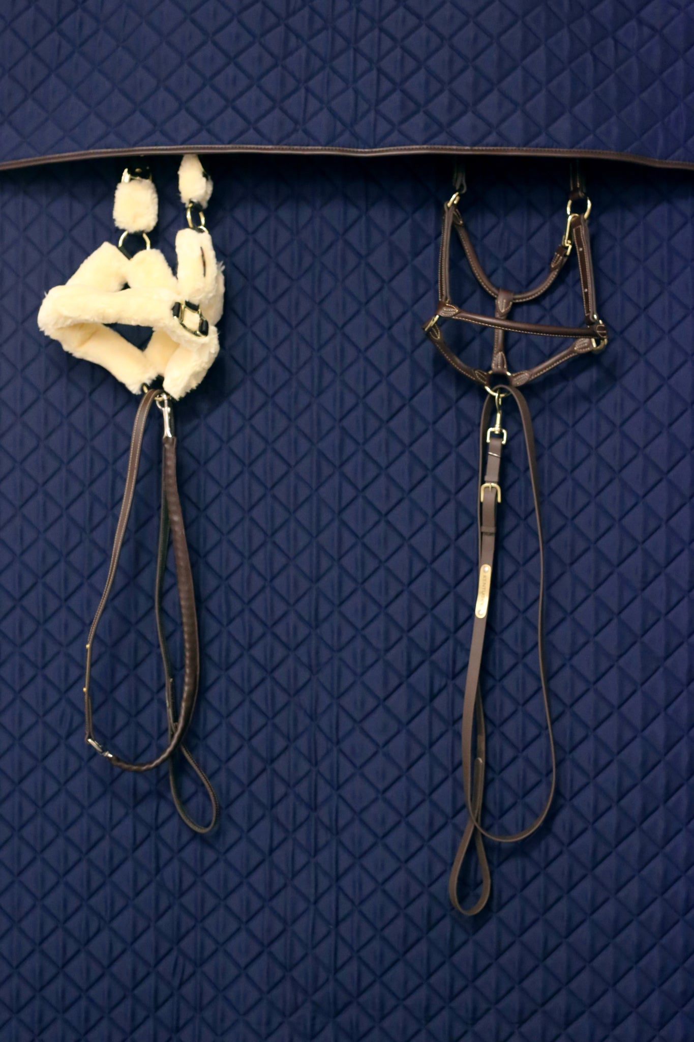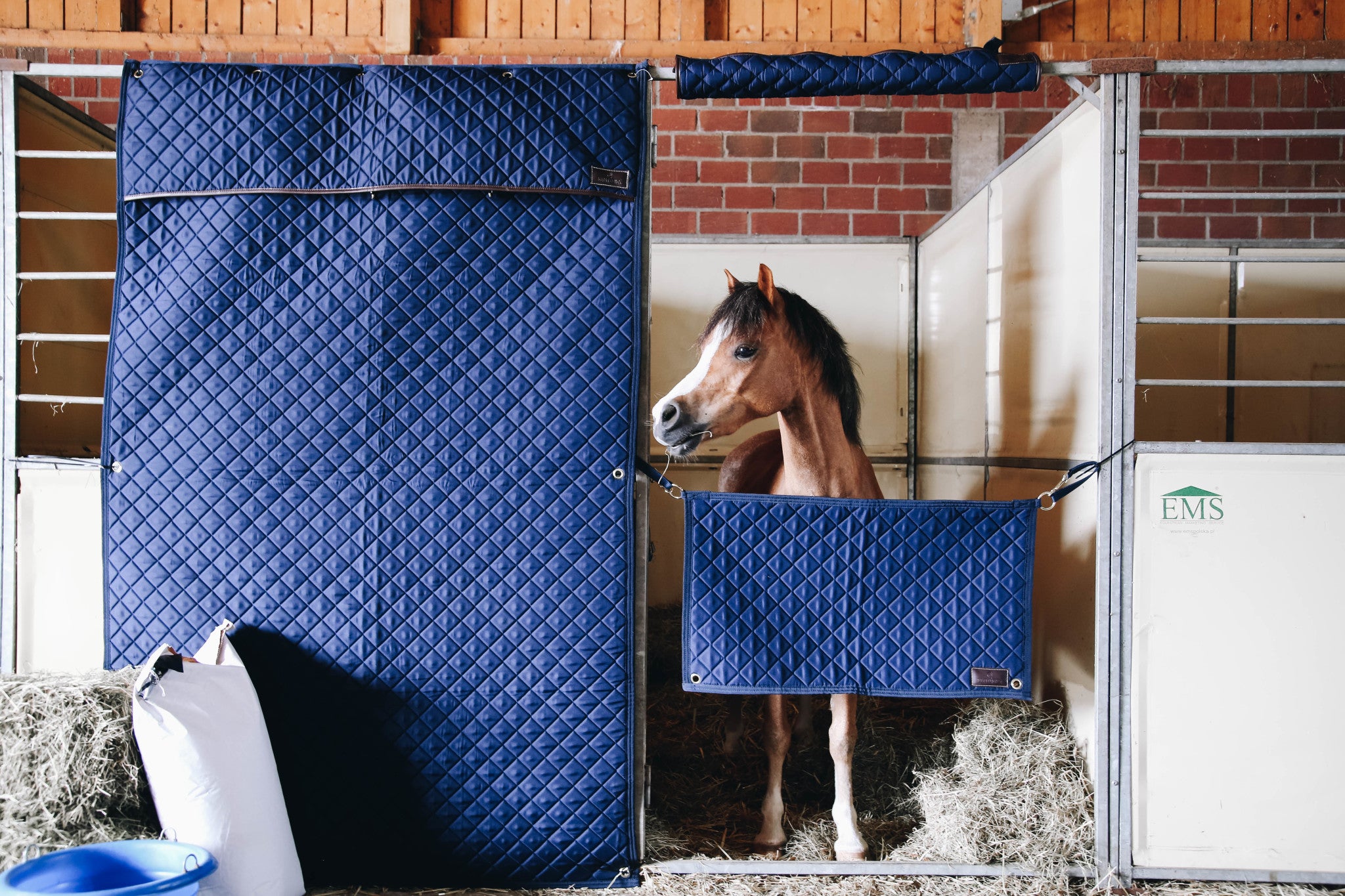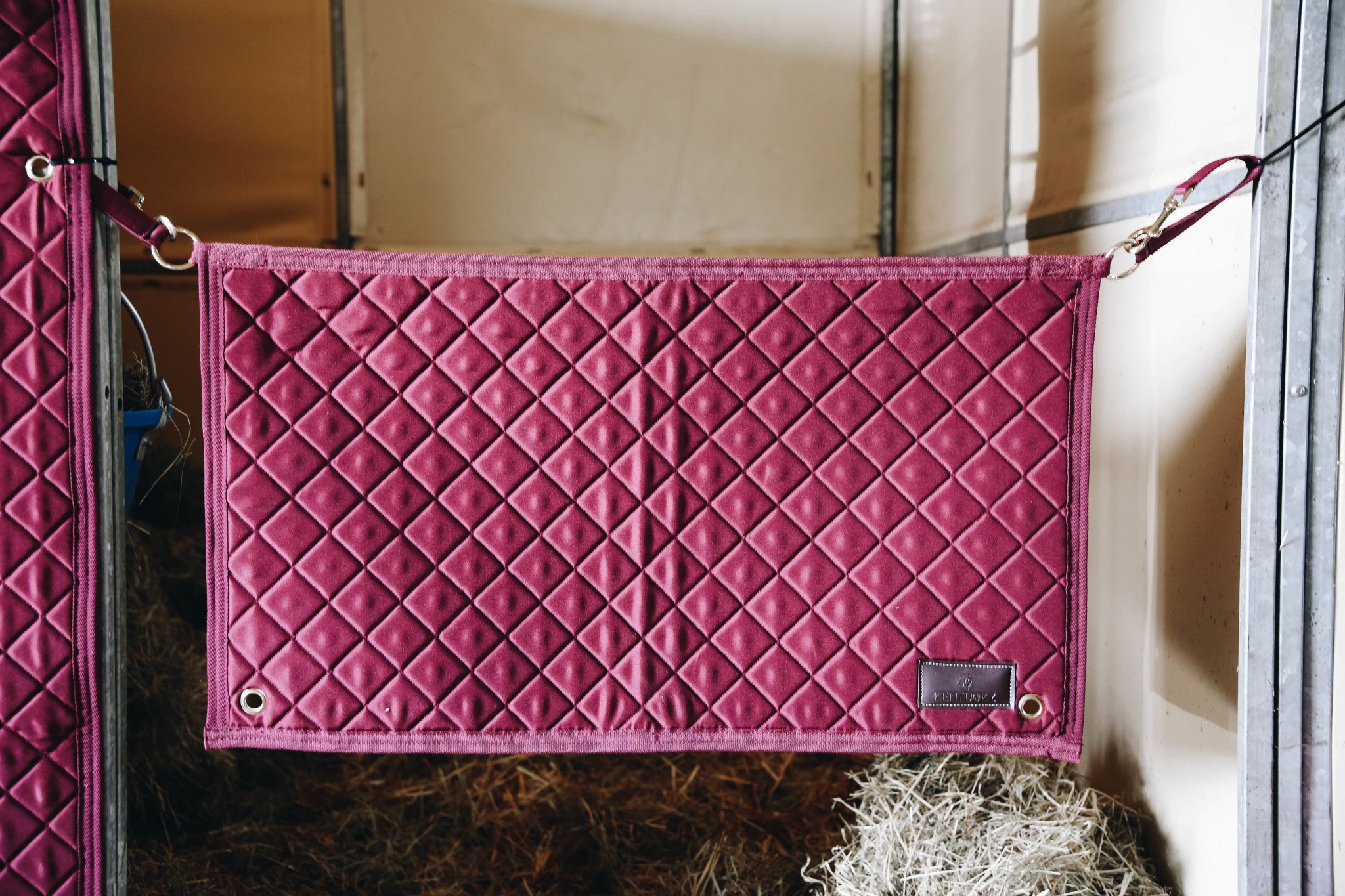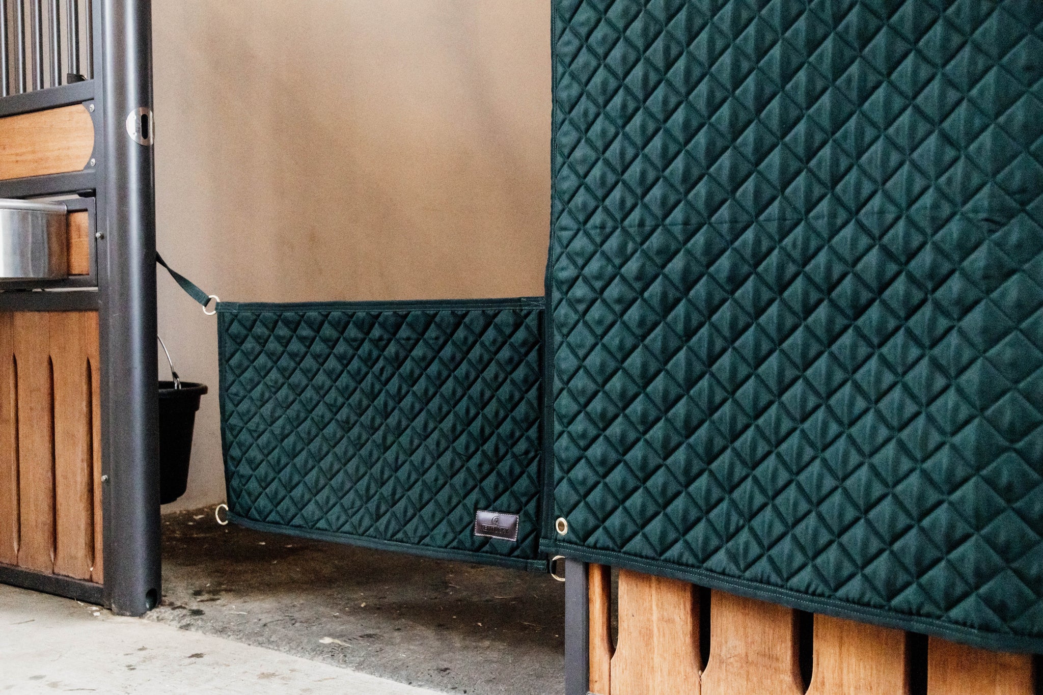 A reversible name tag on the front offers space for personalization. The bag also features a hook-and-ring system at the top, making it easy to hang anywhere. Styled with the same elegant diamond quilting as our stable collection (curtain, guard, head protector) and rugs, it completes the signature Kentucky show look.