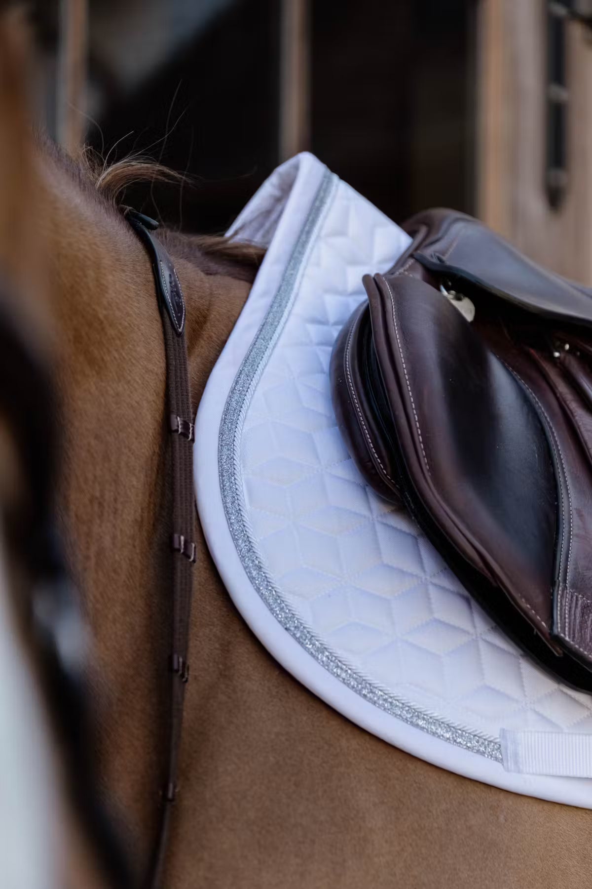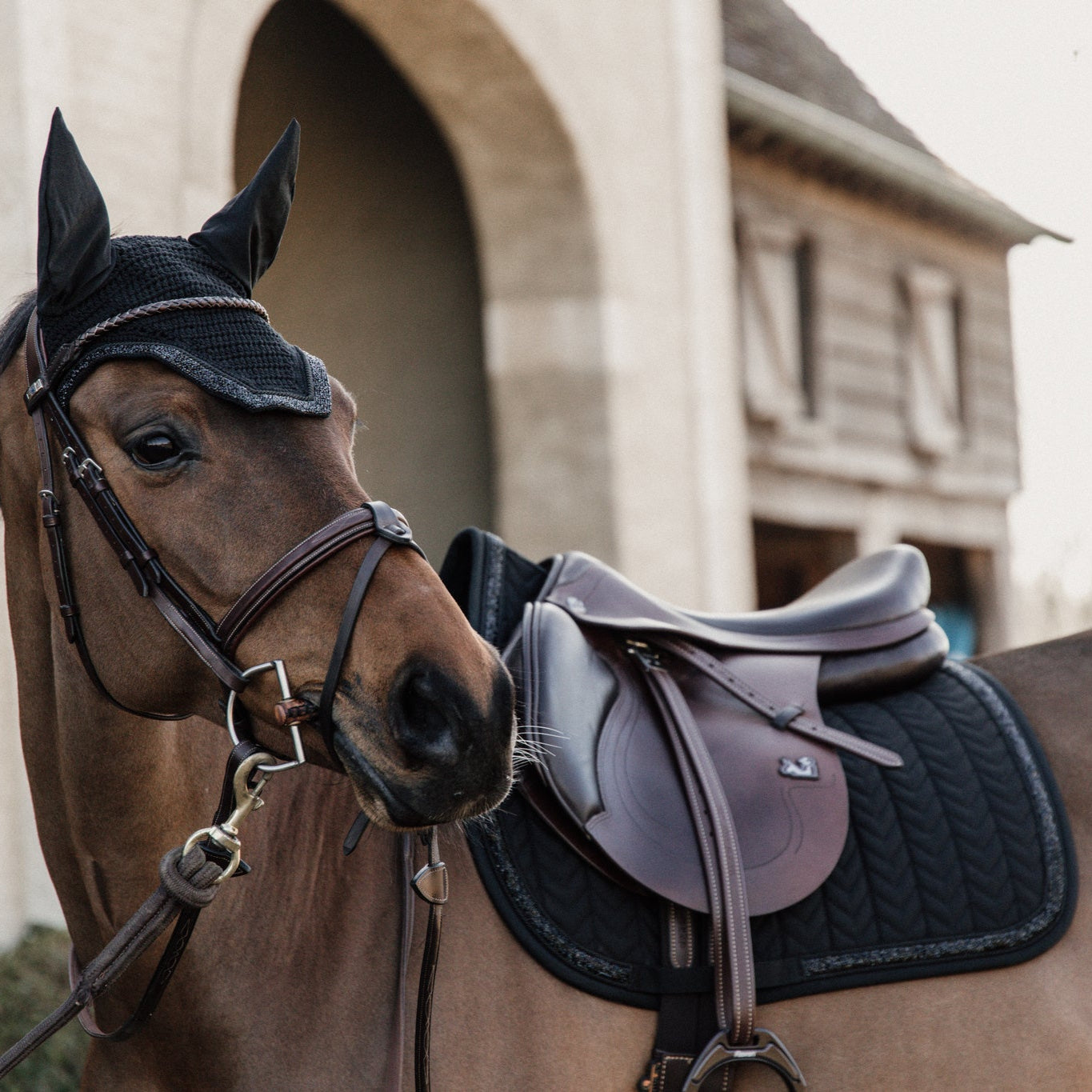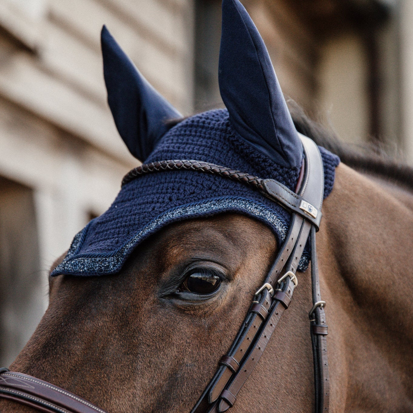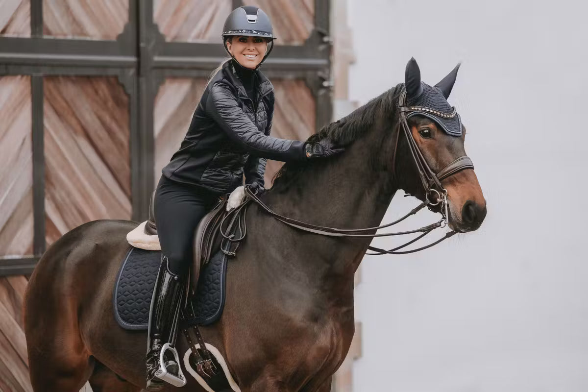 The Fly Veil Glitter Stone blends a modern American style with Kentucky Horsewear’s trusted craftsmanship. It offers effective protection for your horse’s ears against flies while riding, helping them stay focused and undisturbed. With no visible logo, it also allows for personalized or sponsor embroidery.