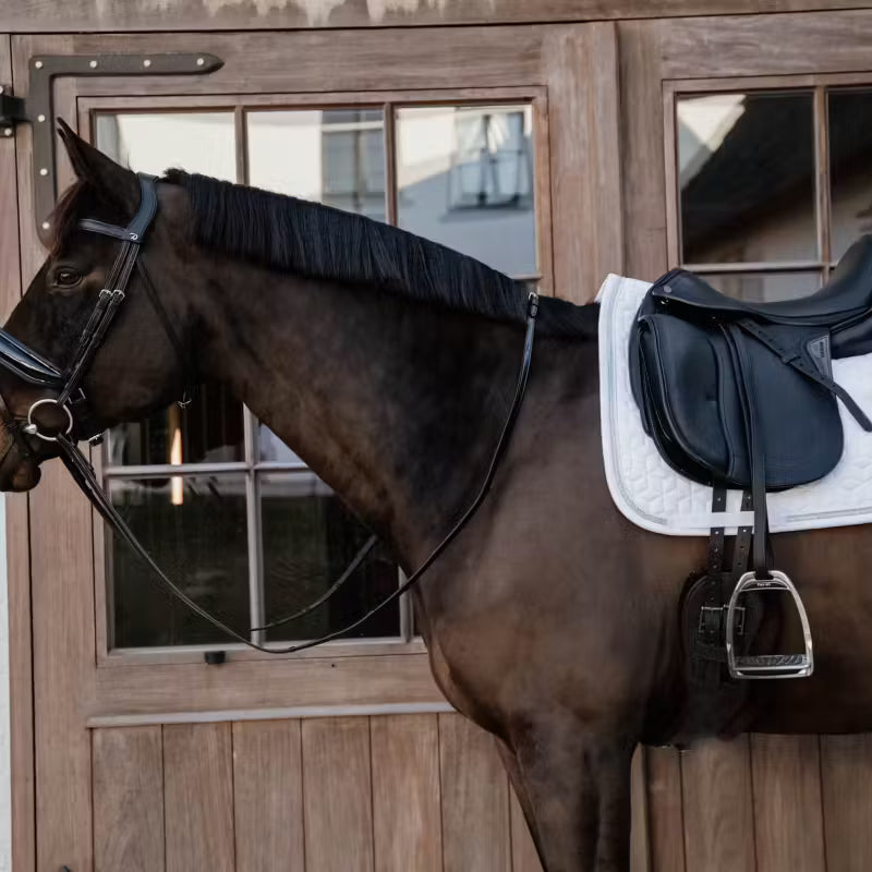 Kentucky Horsewear used a memory foam that is known for its use in the army and as protective gear. We developed a half pad that protects your horse the same way. The 3D spacer is a 3D honeycomb structure with a cushioning effect, which has shock-absorbing performances. The material is highly breathable and ensures that the horse’s back won’t heat up. This will diminish any irritations at the back of the horse.