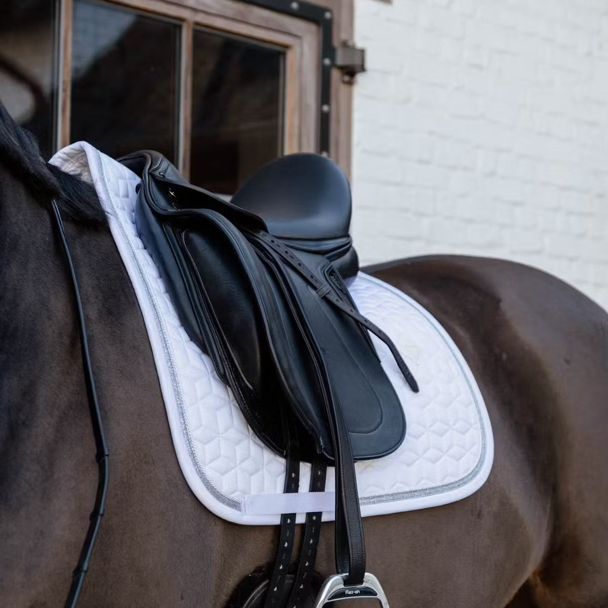 Our half pad impact equalizer absorbs all shocks and evenly balances them out. This does not only relieve the horse’s back, but also the back of the rider. Due to this, the pad is excellent for every discipline. The pad is also suitable for normal training as it is continuously equalizing the pressure on the horse’s back. It will be simpler to relax and tighten the muscles of the horse. This will benefit while riding because the horse can move more freely. In the long term, this contributes to a flexible and mobile horse. Any shocks generated by the rider will be absorbed too, this will stabilize the saddle and has ergonomic benefits for both the rider and the horse.