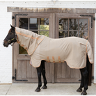 Crafted from a dense, durable mesh fabric, this rug offers excellent protection from insects while remaining breathable. The mesh is strong enough to withstand daily use in the field and is designed with a flat inner surface that feels soft against the skin and prevents hair from sticking. The light-colored fabric reflects sunlight, helping to keep your horse cool, while still allowing air to circulate. Key areas like the mane, chest, and tail are lined with smooth polyester to prevent rubbing and irritation.