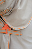 The anatomical cut ensures the rug stays in place, even after your horse rolls. The comfort front closure is easy to fasten and avoids any pressure points. A belly flap, secured with hook-and-loop fasteners and three straight surcingles, provides full coverage and prevents insects from accessing the underside. The extended tail flap includes an elastic band to keep it snugly in place, offering better protection for the tail area. The detachable neckpiece is reinforced with sturdy webbing on both sides to prevent slipping and to distribute pressure away from the mane.
