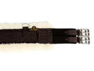 Designed for flexibility, softness, durability, lightness, and comfort, this girth delivers on all fronts. It includes strong triple-layered elastics on both ends to help evenly distribute pressure, along with three D-rings for easy attachment of training aids. The lining is made from high-quality artificial sheepskin, making it 100% animal-friendly while offering the same comfort and performance as real fleece.
