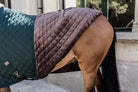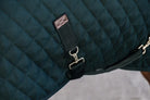 The Show Rug is made from 600D high tenacity polyester with a classy yet timeless diamond quilting. This makes it incredibly hard to tear the rug and avoids that shavings stick to the rug. To prevent pressure on the shoulder and wither area, the collar of the Show Rug is made from our popular artificial sheepskin. Next to a fancy look, the artificial sheepskin is also much more comfortable. For example, when the horse is eating the rug will not cut into the chest. The rug has a 160g fiberfill filling, which has the same performance as down but does not absorb any smell. To avoid rubbing marks, the rug is lined with our signature artificial rabbit skin. This fabric is extremely soft and creates a shiny effect on the horse’s coat. On top of that, the artificial rabbit skin creates tiny pockets of air. These pockets trap and retain the horse’s body heath causing an extra isolating layer. The combination of the materials creates a very breathable rug with a high warmth-to-weight ratio.