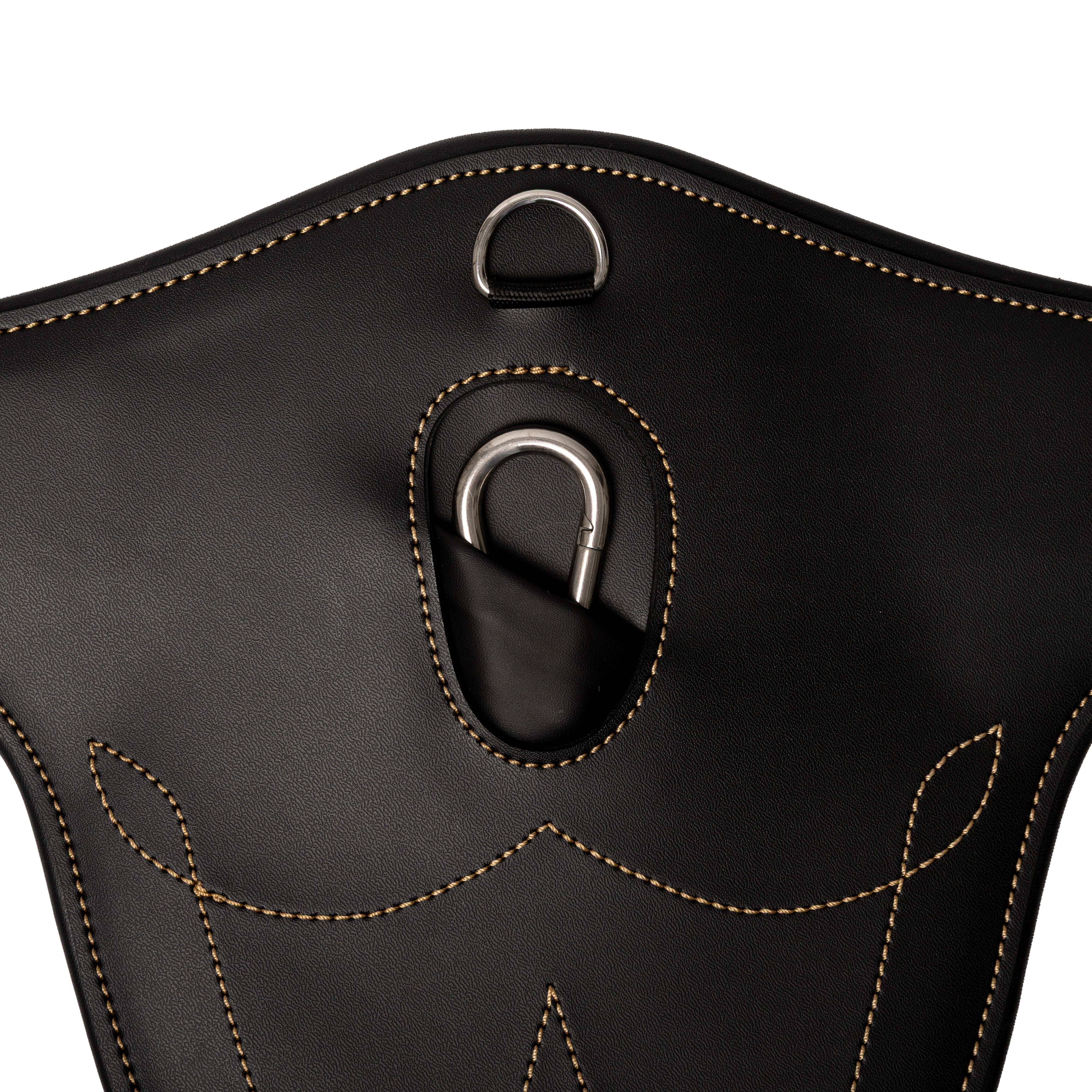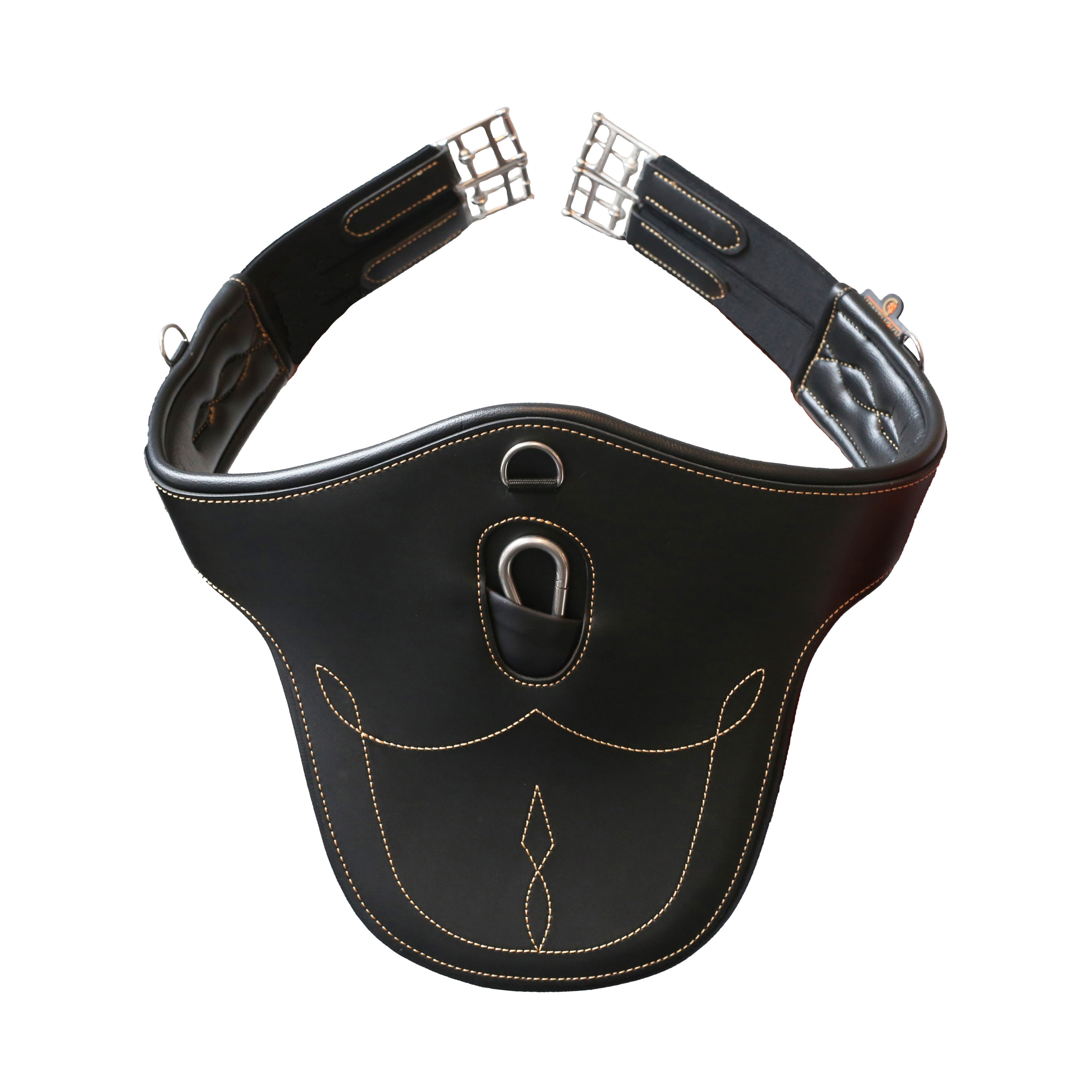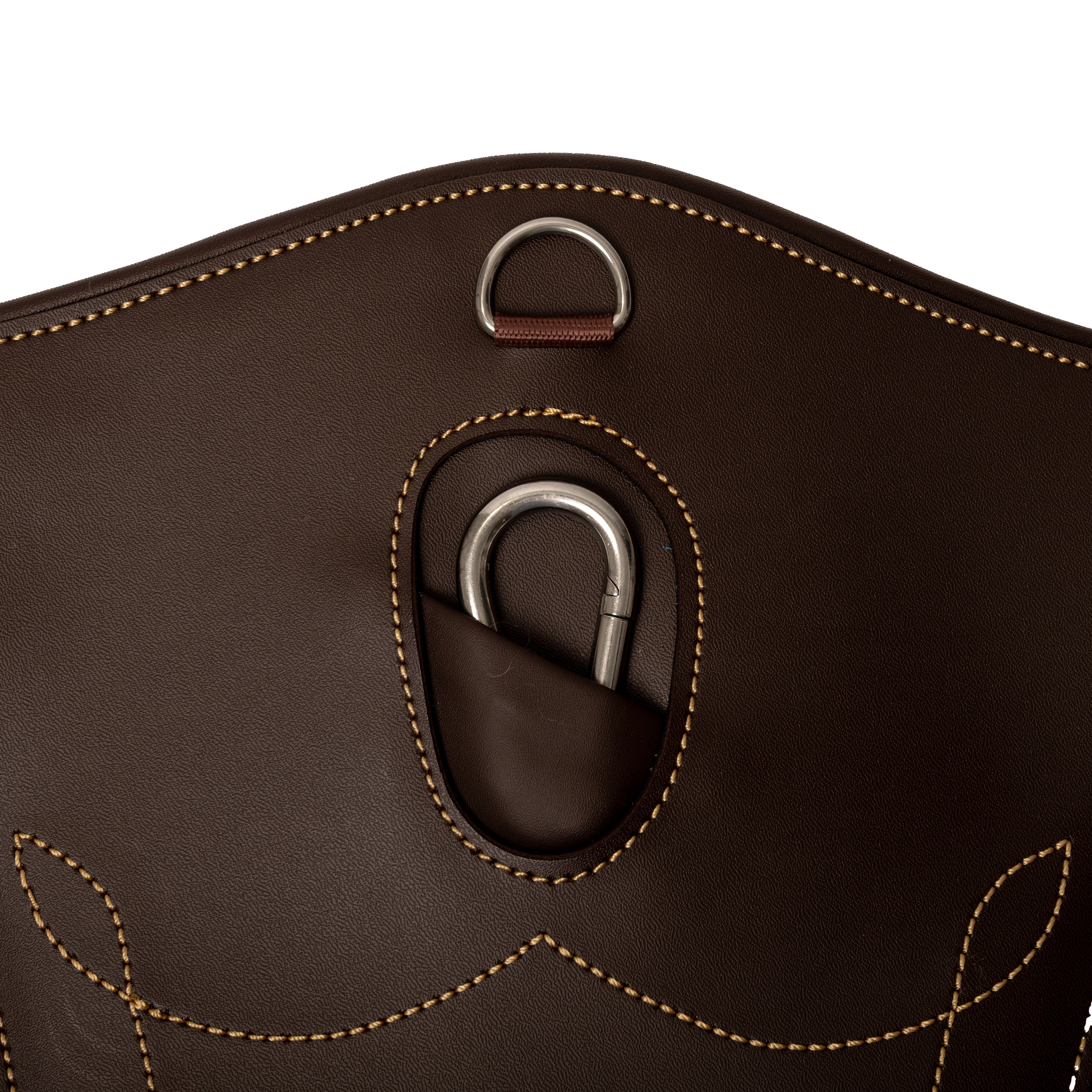 Along with its wide protective plate, the girth is anatomically shaped to support the horse’s natural movement, helping to reduce pressure on the shoulders and elbows and minimize the risk of injuries from studs or shoes.