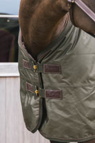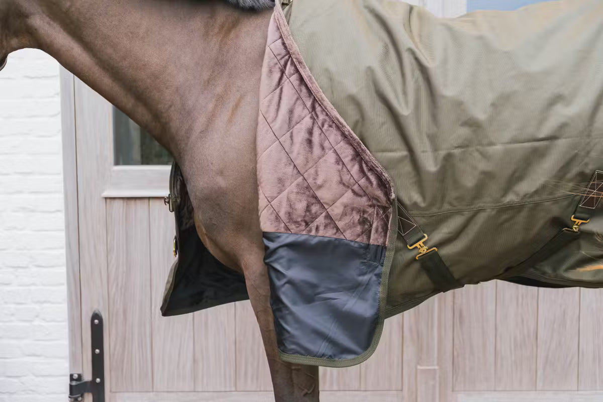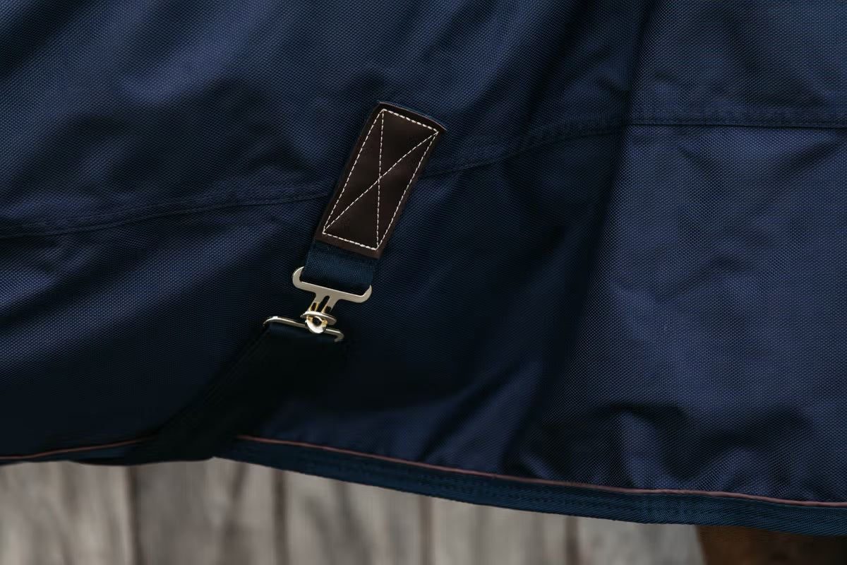 The waterproof pro has a 1680D outside fabric in a canvas look. This polyester outside is super strong, durable, and dirt-repellent. Thanks to the PU waterproof coating (ISO 10.000mm), a dry horse is guaranteed. The 160g filling is a PES fiber fill, which is warm and breathable thanks to the multiple layers in which the air can circulate. The inside of the Turnout Rug All Weather Waterproof Pro is lined with our signature artificial rabbit skin. This prevents rubbing marks and works as an extra isolating layer next to the fiber fill.
