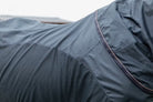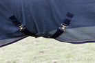 The top section of the rug is crafted from our durable 600D ripstop polyester, a waterproof material with a 10,000mm water column rating to keep your horse dry. This section is lined with smooth, anti-bacterial polyester for added comfort and hygiene. The sides feature a lightweight mesh fabric that shields your horse from flies and other insects while allowing for maximum airflow. Both fabrics offer UV protection, making the rug suitable for sunny days as well.