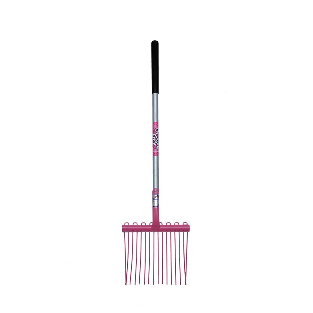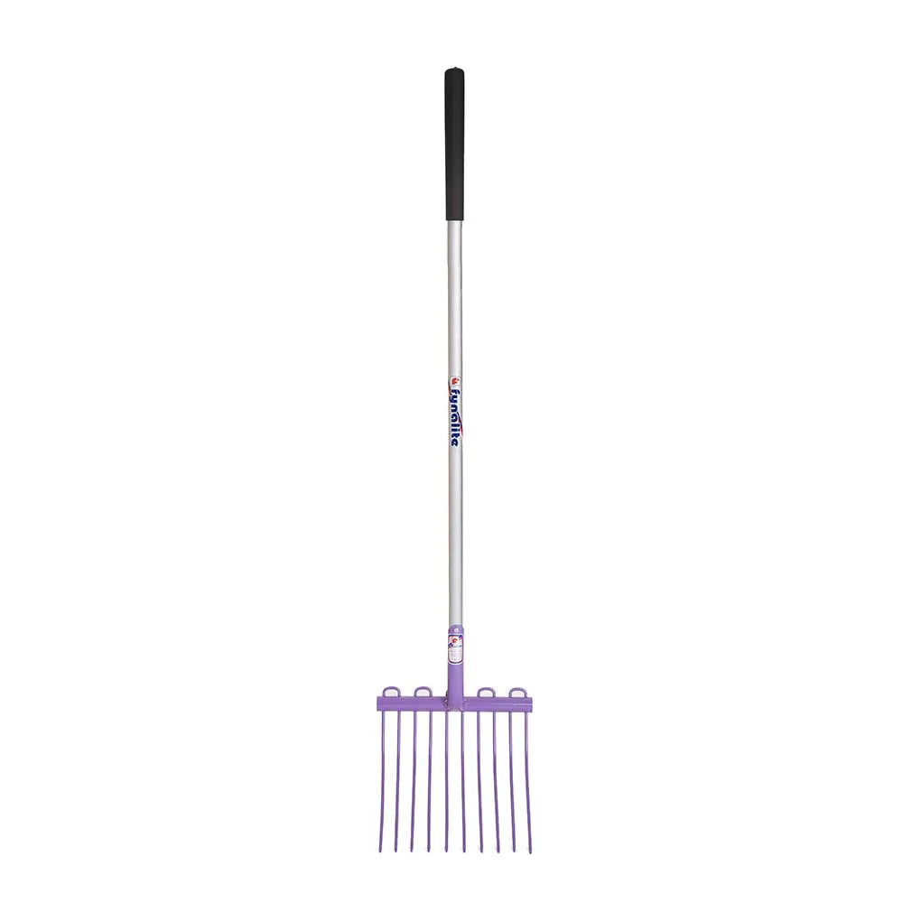 Strong steel yet lightweight hot dip galvanised shavings fork. 120cm wooden handle. Head Width 36cm, Head Depth 30cm, Weight 1.55kg.