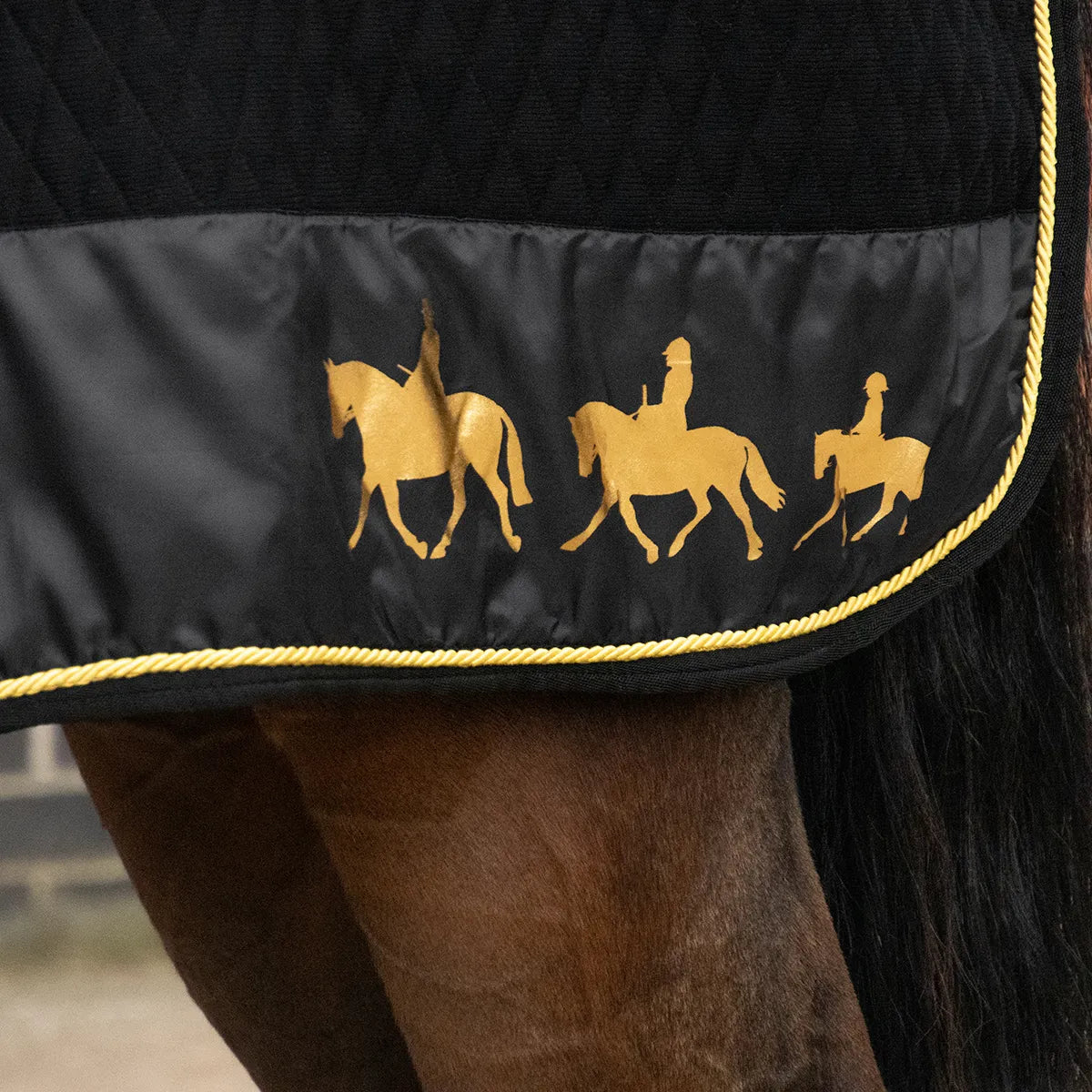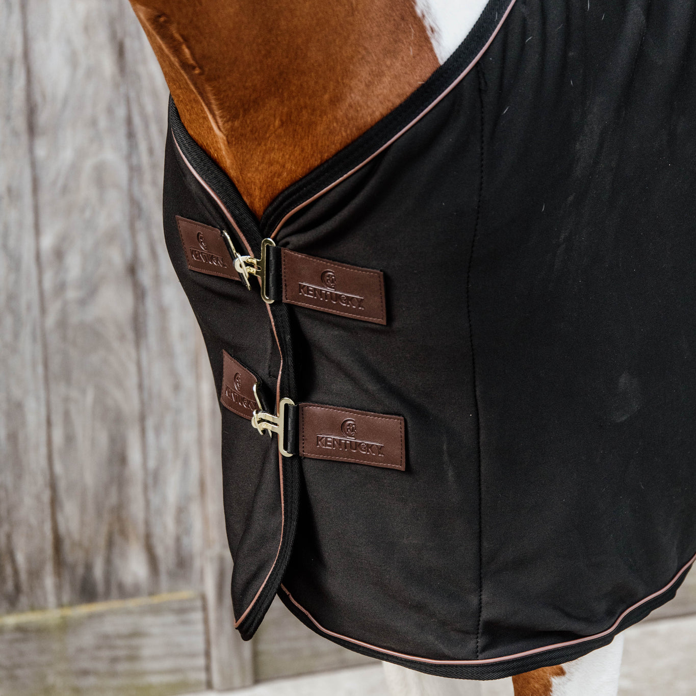 The SUPREME PRODUCTS® Body Wrap, made from the finest grade 4 way stretch Lycra mix, is a superb garment for aiding in preparation by laying the coat, adding condition and shine and keeping plaits intact and pristine. This garment can be used whilst travelling and also stabling, in place of duvets or as a lightweight rug. It should be close fitting, but not tight. It has a 12" underbelly strap and leg straps to hold it securely and comfortably. We recommend finishing off with a fillet string.